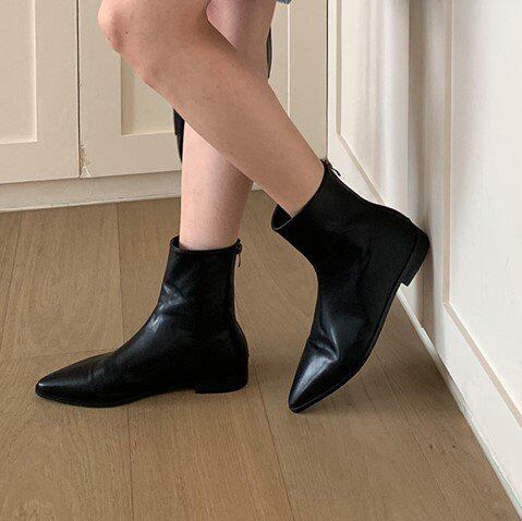 ショートブーツ ポインテッドトゥ アンクルブーツ フェイクレザー エコレザー ローヒール 黒 ブラック 1cmヒール レディース バックファスナー きれいめ カジュアル 大きいサイズ 秋 冬