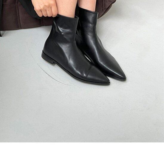 脚をきれいに見せるポインテッドトゥのショートブーツ。