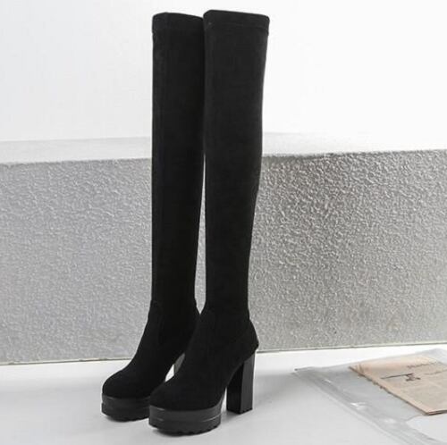 ロングブーツ レディース 大きいサイズ ニーハイ オーバーニー ハイヒール 秋冬 秋 冬 厚底 スエード ロング ニーハイブーツ オーバーニーブーツ ハイヒールブーツ レディースブーツ スクエアトゥ