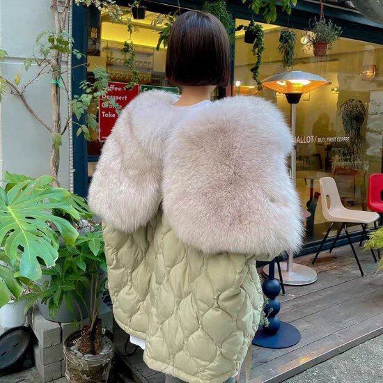ダウンジャケット レディース ジャケット ダウン アウター 羽織 ビッグカラー 襟 ファー ふわふわ 個性的 カジュアル お出かけ 長袖 フロントジッパー 防寒 防風 暖かい コート ジャケット
