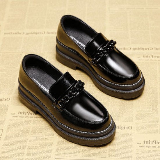 ローファー レディース スリッポン 靴 シューズ 厚底シューズ ラウンドトゥ 黒 ブラック カジュアル きれいめ お出かけ おしゃれ チェーン 牛革 レザー エレガント 上品 革靴 ローファー 女性靴