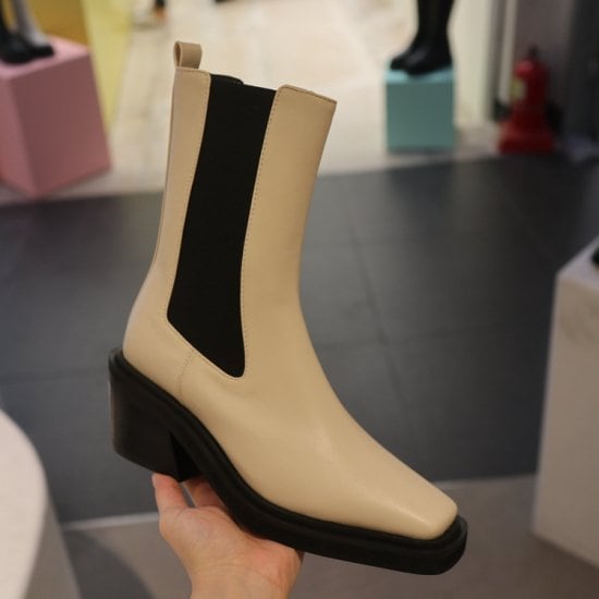 ショートブーツ サイドゴアブーツ スクエアトゥ ミドルブーツ バイカラー フェイクレザー エコレザー ハーフブーツ 5cmヒール レディース 歩きやすい カジュアル おしゃれ ミディアム丈 秋 冬
