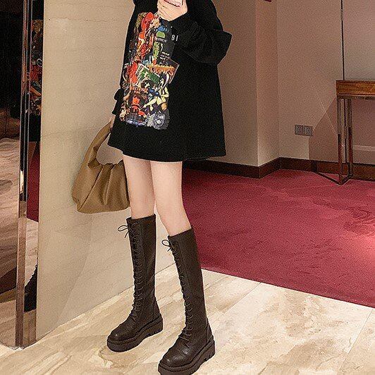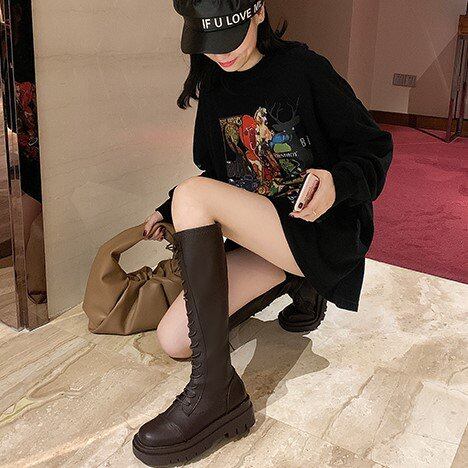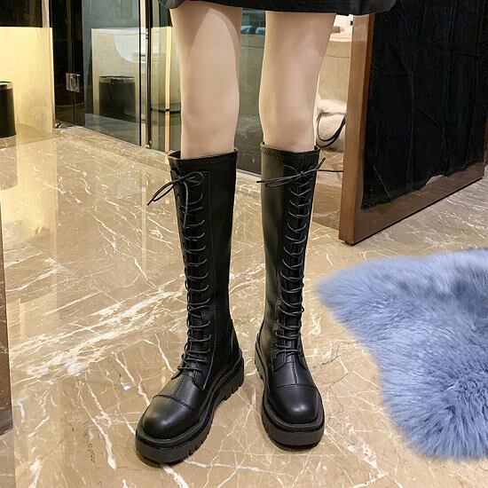 ロングブーツ レディース 厚底 大きいサイズ 秋冬 秋 冬 ミドルヒール 厚底ブーツ レースアップ ブーツ 編み上げ ゴツめ 太ヒール レースアップブーツ 編み上げブーツ レディースブーツ ジッパー