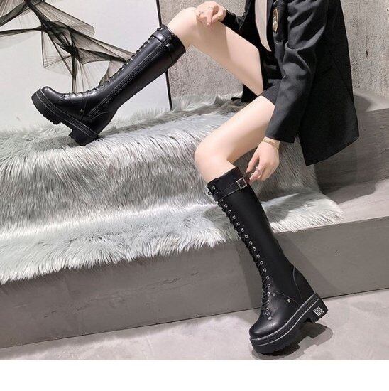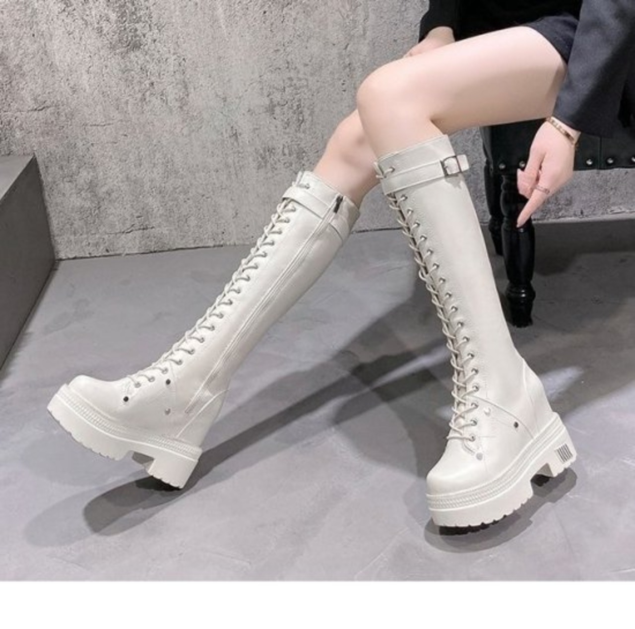 ロングブーツ レースアップブーツ 厚底ブーツ フェイクレザー エコレザー 黒 ブラック ベージュ モード 6cmヒール レディース 編み上げ カジュアル ガーリー おしゃれ 小さいサイズ 秋 冬