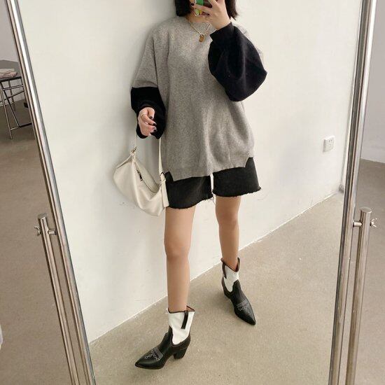 個性的なおしゃれを演出するバイカラーデザインのショートブーツ。