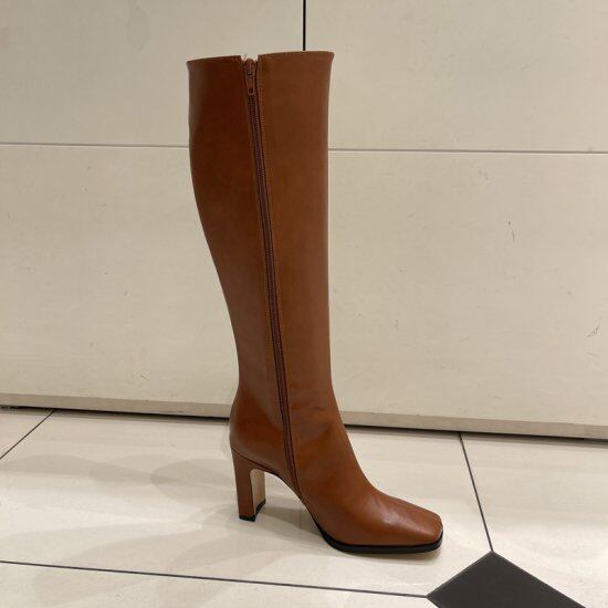 ロングブーツ スクエアトゥ ハイヒール スリム フェイクレザー エコレザー 黒 ブラック ブラウン 8cmヒール レディース シック きれいめ カジュアル 上品 おしゃれ エレガント シンプル 秋冬