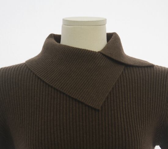 アシンメトリーな襟元デザインが個性的でおしゃれ。
