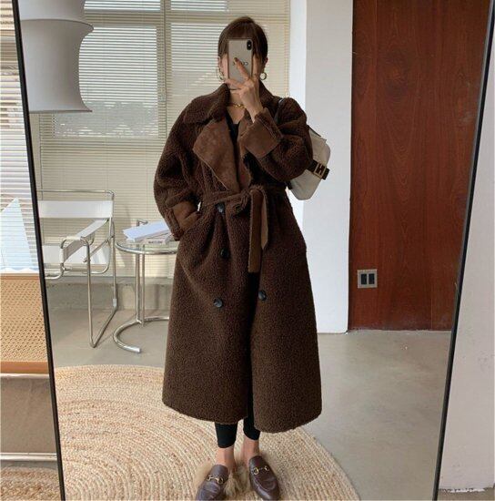 ロングコート ボアコート ダブルブレスト ベルト付き レトロ クラシカル アウター 黒 ブラック ブラウン パープル ブルー レディース ゆったり オーバーサイズ かわいい おしゃれ 秋 冬