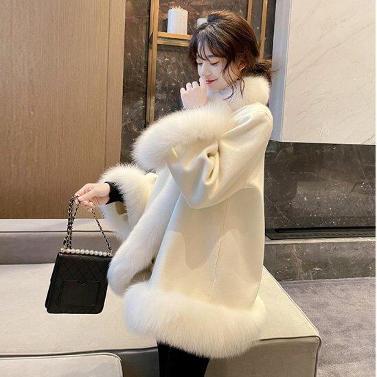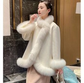 エレガントなファー付きのハーフコート。