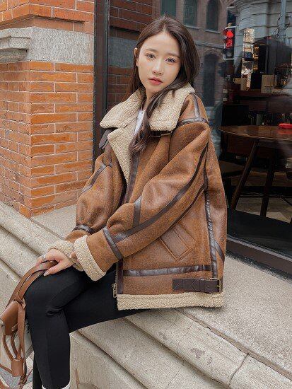 ボアブルゾン レディース ボアジャケット アウター 羽織 ブルゾン スタンドカラー ライダースジャケット カジュアル お出かけ おしゃれ ゆったり ルーズシルエット ブラウン 茶 フロントジッパー