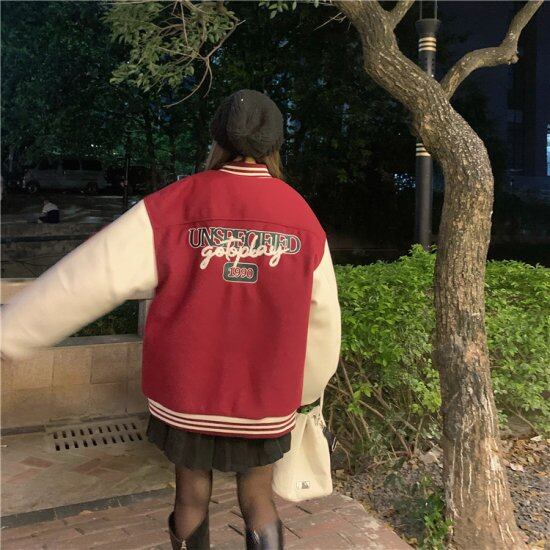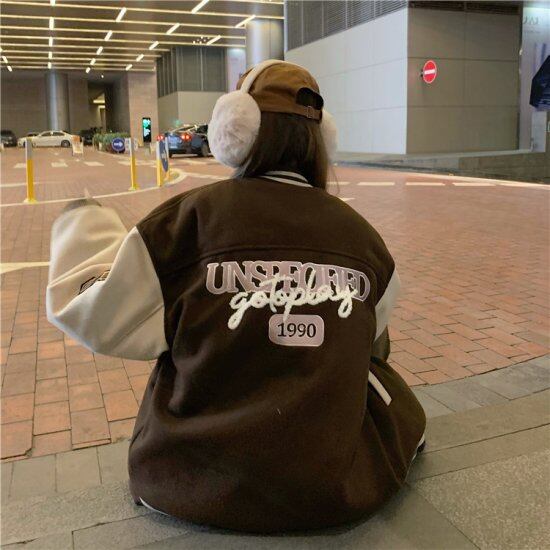 スタジャン ブルゾン ロゴ オーバーサイズ アメリカン レトロ クラシカル バイカラー ツートーン ユニフォーム ナンバー レディース かわいい カジュアル ルーズ ジャケット カレッジ おしゃれ