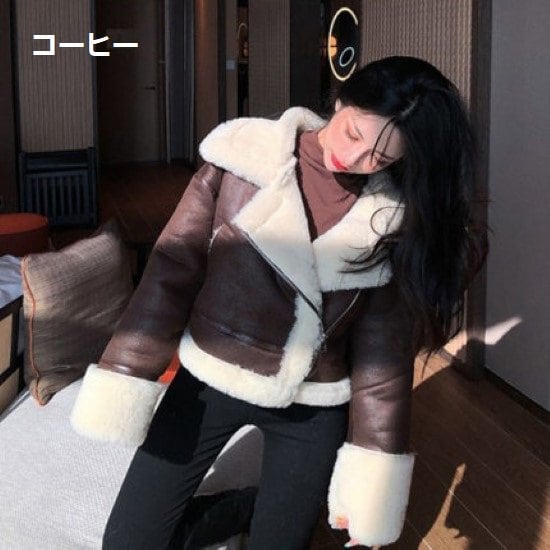 ボアブルゾン レディース ボアジャケット ライダースジャケット 羽織 アウター 厚手 長袖 襟あり ショート丈 クロップド丈 秋冬 暖かい カジュアル お出かけ おしゃれ ショートコート ブルゾン
