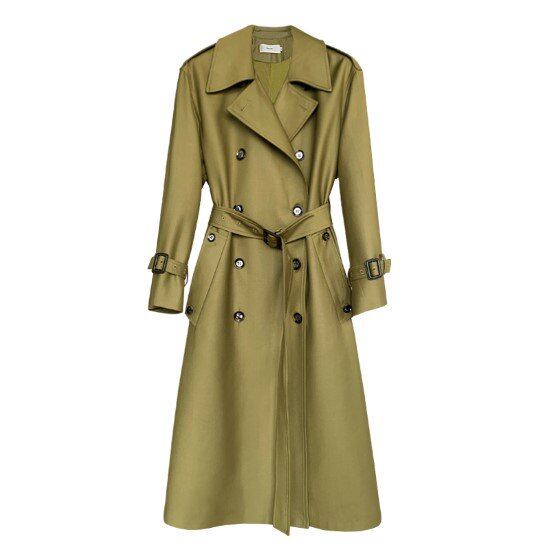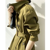 ロングコート レディース コート アウター 羽織 ロング丈 ウエストベルト ダブルブレスト 襟あり 長袖 カジュアル きれいめ お出かけ おしゃれ シンプル 無地 通勤 オフィス ポケット コート