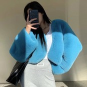 フェイクファージャケット レディース ジャケット ショート丈 クロップド丈 羽織 アウター カジュアル お出かけ おしゃれ ふわふわ 秋冬 長袖 シンプル 無地 厚手 ボリューム袖 ノーカラー 女性