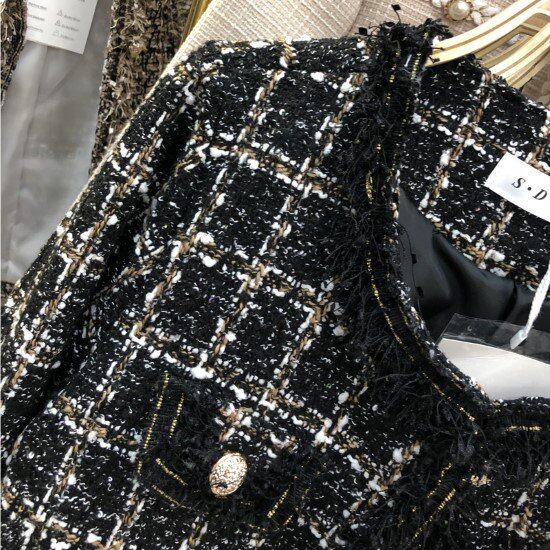 ツイードジャケット レディース ジャケット ツイード 羽織 アウター 長袖 ノーカラー きれいめ エレガント カジュアル おしゃれ ラウンドネック スリムフィット ボタン チェック柄 格子柄