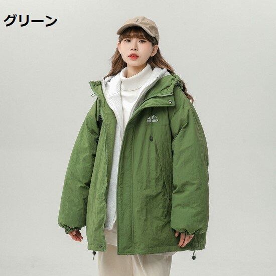 フェイクツーピースジャケット レディース ジャケット 羽織 アウター 厚手 フード付き 重ね着風レイヤード フェイクツーピース フロントジッパー カジュアル お出かけ おしゃれ 暖かい 冬
