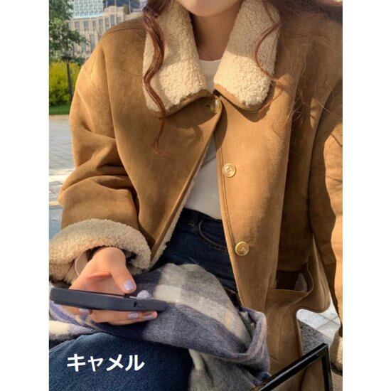ボアジャケット スエードジャケット リバーシブル フェイクムートン ショート丈ジャケット ショートコート ブルゾン アウター ブラウン レディース かわいい カジュアル バイカラー 暖か 防寒 秋冬