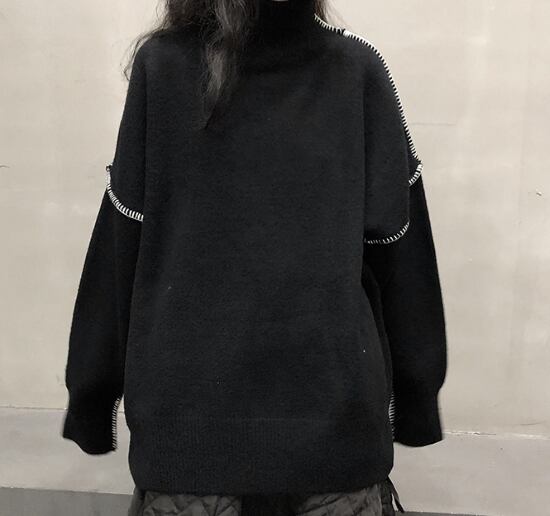 ニットトップス レディース セーター ニット トップス タートルネック ハイネック カジュアル お出かけ おしゃれ シンプル 無地 長袖 プルオーバー ステッチ ゆったり ルーズ ニットトップス