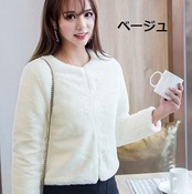ファージャケット フェイクファー ノーカラージャケット ショートジャケット 羽織り アウター エコファー レディース 黒 ブラック 白 ホワイト ピンク かわいい きれいめ ガーリー パーティー