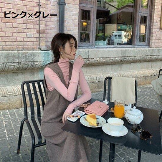 セットアップ レディース ワンピース トップス 2点セット ツーピース ノースリーブワンピース Vネック カットソー ハイネック 長袖 シンプル 無地 重ね着 レイヤードスタイル カジュアル お出かけ