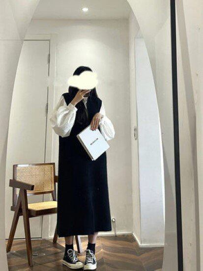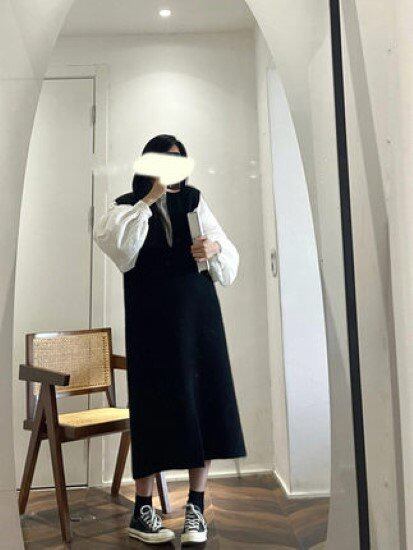 ノースリーブワンピース レディース ワンピース ジャンパースカート ノースリーブ Vネック シンプル 無地 ロング丈 レイヤードスタイル カジュアル お出かけ おしゃれ ベスト 黒 ブラック