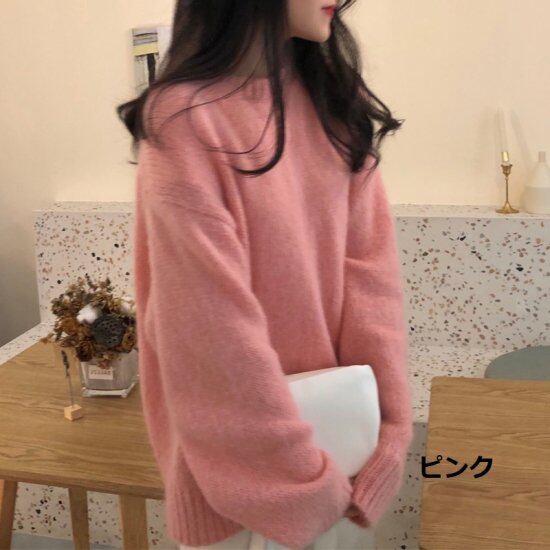 ニットセーター トップス ニット プルオーバー ロングニット モヘアライク ラウンドネック オーバーサイズ レディース 白 ホワイト イエロー ピンク レッド かわいい ガーリー ふわふわ 暖か