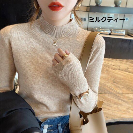 ハイネックセーター ニットトップス ボトルネック 長袖 プルオーバー ハーフネック レディース 黒 ブラック ホワイト きれいめ カジュアル カラーバリエーション 12colors おしゃれ
