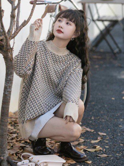 ニットトップス レディース ニット セーター トップス プルオーバー 総柄 長袖 ハイネック ゆったり ルーズシルエット カジュアル お出かけ おしゃれ 秋冬 レトロ ニットセーター トップス 女性
