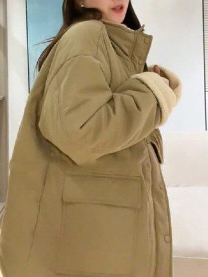 ボアジャケット レディース ジャケット ボア 羽織 アウター 厚手 冬 暖かい 長袖 カジュアル お出かけ シンプル 無地 スタンドカラー ポケット ゆったり ルーズ オーバーシルエット ジャケット
