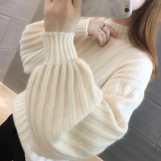 ボリューム袖が可愛いハイネックニットです。