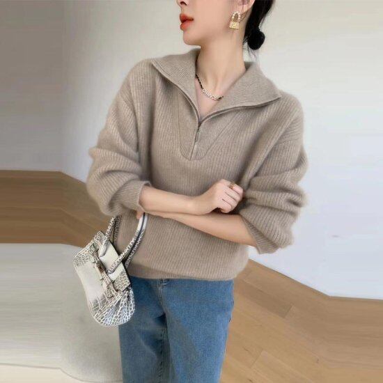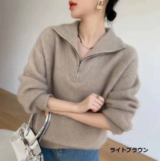 ニットトップス ハーフジップ 2way セーター ニットプルオーバー ハイネックニット レトロ レディース ホワイト ブラウン ブルー 無地 ユニセックス きれいめ カジュアル 暖か 秋 冬