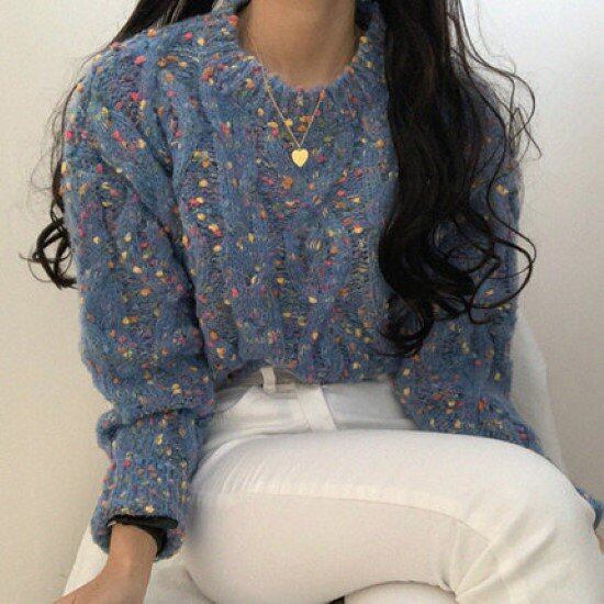 ニットセーター レディース セーター ニット トップス ラウンドネック ミックスカラー 秋冬 ケーブル編み ツイスト編み カジュアル お出かけ おしゃれ プルオーバー ざっくり ニットセーター 女性