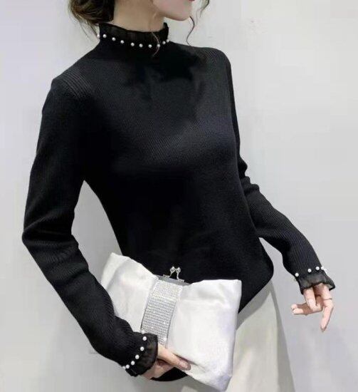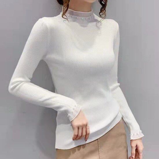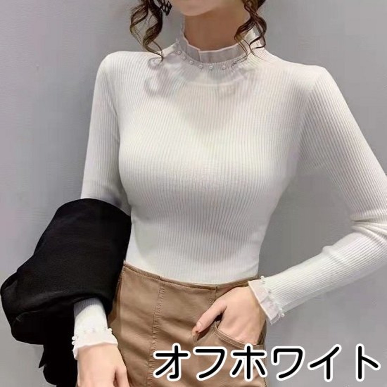 ハイネック ニット レディース 秋冬 冬 秋 セーター レース フリル ビーズ パールビーズ ハイネックニット ハイネックセーター ニットレディース タートルネック 冬ニット ニットセーター 冬新作
