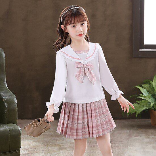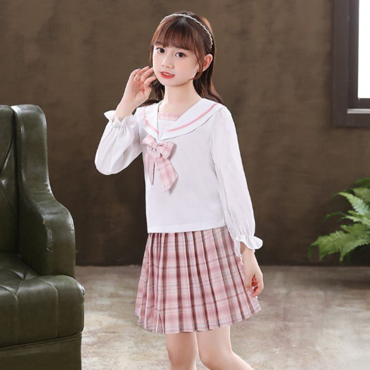 卒園式 子供服 ブラウス トップス スカート ボトムス 女の子 キッズ ガールズ ツーピース 2点セット 上下セット チェック柄 入園式 入学式 お呼ばれ プリーツスカート セーラー服 リボン