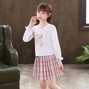 セーラー襟がおしゃれなブラウスとプリーツスカートの2点セット。