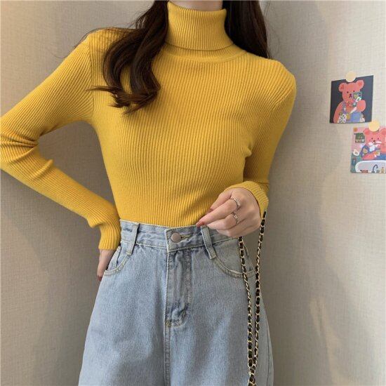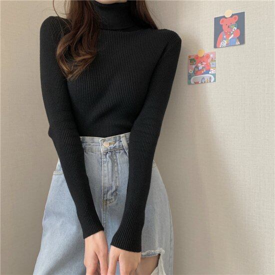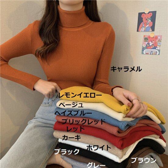 ニットトップス タートルネックセーター リブニット スリム フィット インナーニット タートルネック レディース 黒 ブラック ホワイト 薄手 カラーバリエーション 11color おしゃれ 秋冬