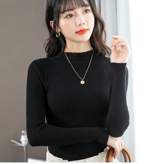 ニットトップス ハイネックセーター リブニットセーター ハーフネック ボトルネック スリム フィット レディース ブラック ホワイト インナーニット カラーバリエーション 10color おしゃれ