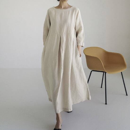 ギャザーワンピース レディース 大きいサイズ ギャザー ロングワンピース ラウンドネック サイドポケット ポケット レディース ボックスプリーツ プリーツ ウエスト切り替え 大きいサイズ ゆったり