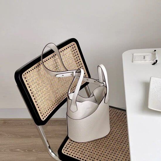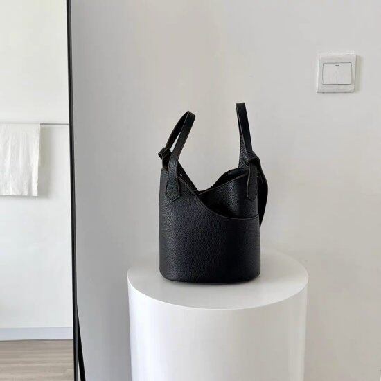 高見えするオシャレなバケツ型ショルダーバッグ。