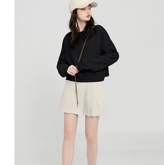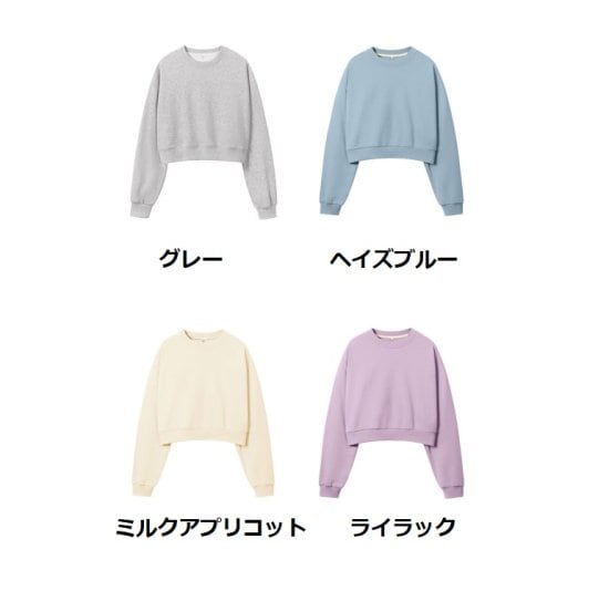 スウェット ショート丈 プルオーバー トップス 長袖 クルーネック ラウンドネック トレーナー ショート丈プルオーバー レディース 黒 ブラック ホワイト パステルカラー かわいい カジュアル 春秋