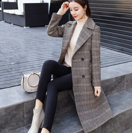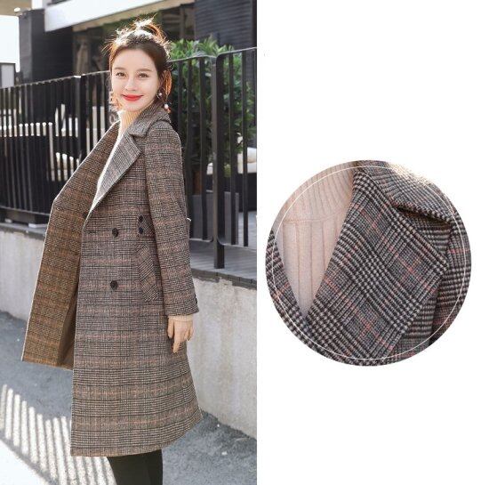 チェック柄コート チェスターコート ダブルブレスト ミディアム丈 ロングジャケット ウールライク ダブルボタン ベルト レディース レトロ クラシカル きれいめ 上品 おしゃれ 小さいサイズ 秋 冬