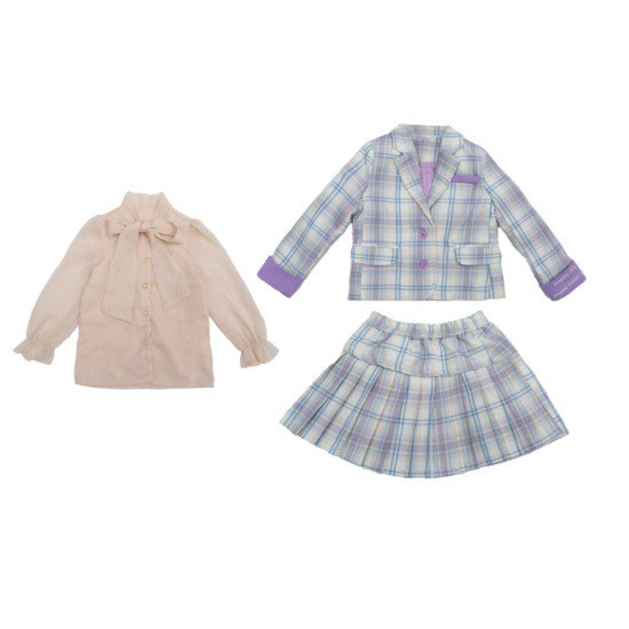 キュートなカラーリングのジャケット、シャツ、プリーツスカートの3点セット。