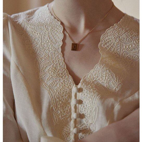 ブラウス 刺繍ブラウス 長袖ブラウス Vネック シャツ くるみボタン プルオーバー フレンチレトロ クラシカル 刺繍 繊細 レディース きれいめ 上品 大人 シンプル ブラウス 通勤 春 秋