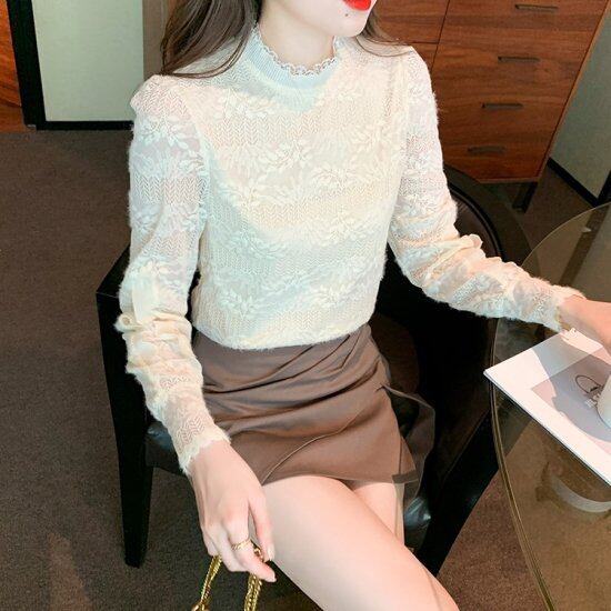 シアーレースが上品で大人かわいいハイネックプルオーバー。