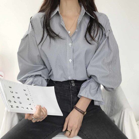 ボリュームのある袖が大人かわいいストライプシャツ。