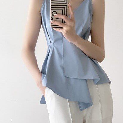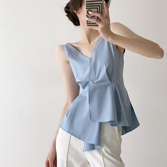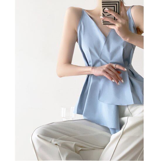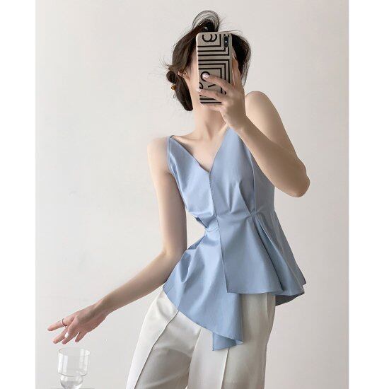 ブラウス キャミソールブラウス ペプラム アシンメトリー 個性的 キャミソール Vネック カシュクール レディース シャツ きれいめ 華やか セクシー パーティー リゾート バカンス おしゃれ 春夏