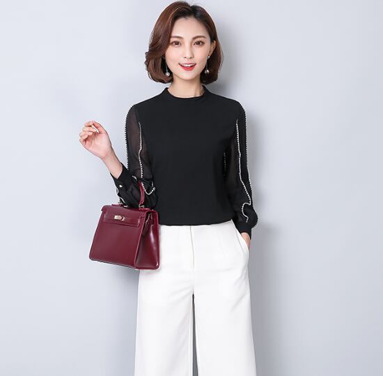メッシュトップス レディース カットソー シフォントップス 長袖 シースルー コントラストカラー ステッチ プルオーバー ボリューム袖 ランタンスリーブ お出かけ おしゃれ きれいめ 無地