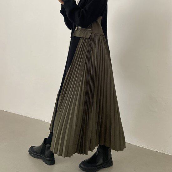 ロングワンピース バイカラーワンピース Aラインワンピース プリーツ 秋冬 配色ワンピ 長袖 フレア おしゃれ 大きいサイズ 体型カバー ロングワンピース バイカラーワンピース Aラインワンピース