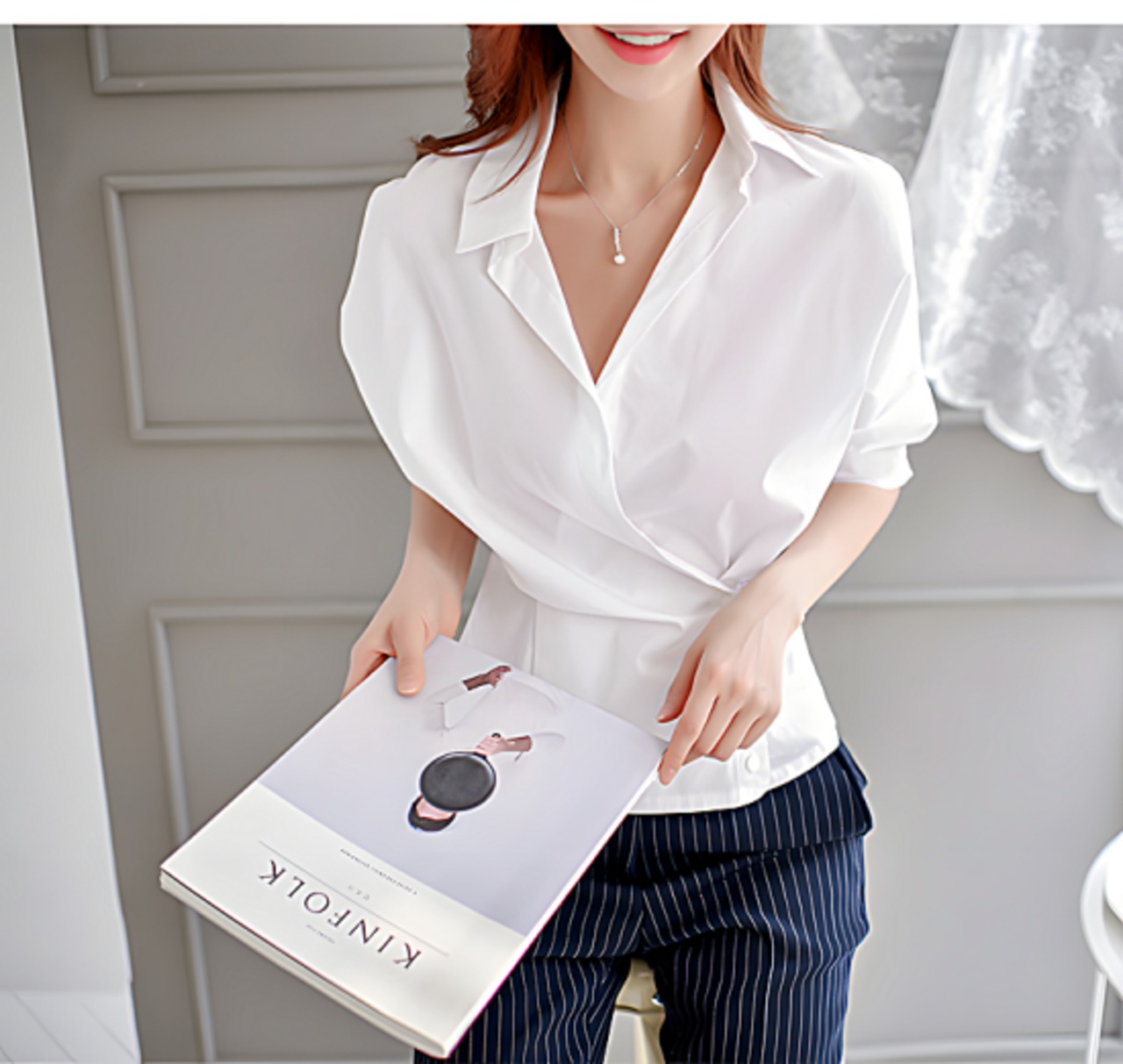 シンプルで着回ししやすい大人かわいい白シャツ。