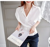 ブラウス 袖ありシャツトップス レディース オールシーズン 体型カバー 大きめ 大きいサイズ きれいめ おしゃれ カシュクール風 ブラウス 袖ありシャツトップス レディース オールシーズン